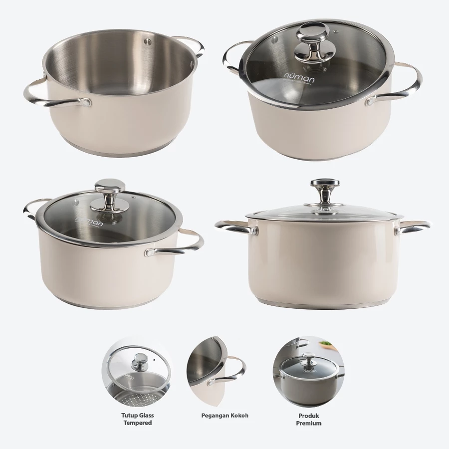 Apabila sobat menggunakan Numan cookware yang terbuat dari bahan stainless steel maka panas akan stabil dengan menggunakan api sedang. Bahan panci, wajan dari Numan menjaga makanan tidak gosong dengan teknologi stainless steel sehingga makanan tetap gurih dan nikmat.