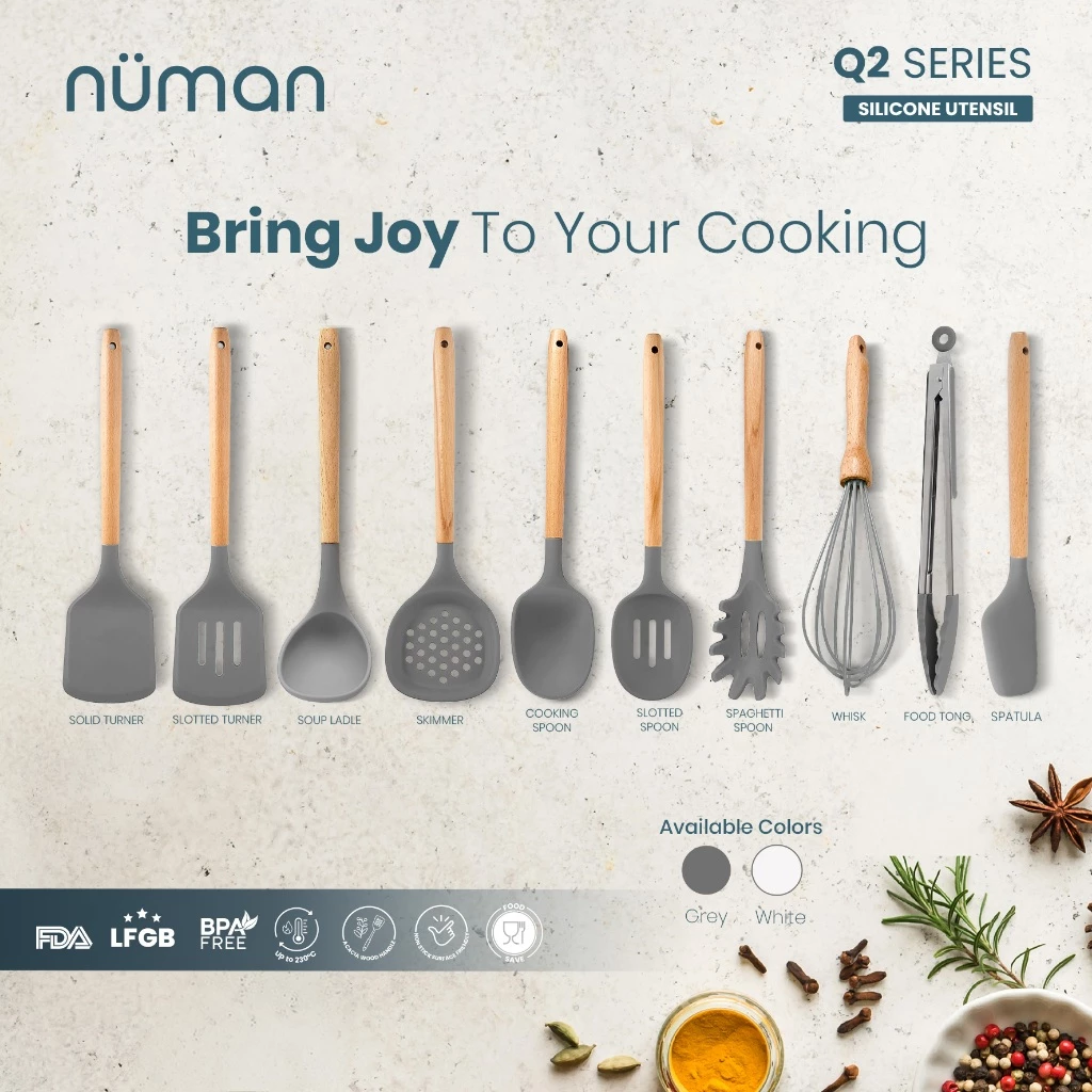 Kitchen Utensil dari Numan menghadirkan berbagai peralatan pendukung dalam penggorengan agar anti lengket dan menghasilkan gorengan renyah. Bahan perkakas ini terbuat dari silikon dengan keunggulan :
